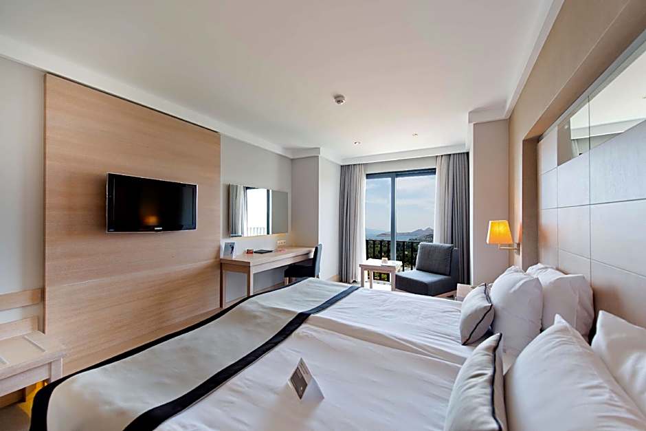DOUBLE SEA VIEW includes a king-size bed 150-183 width plus desk, cable tv, hairdryer, tea and coffee making facilities , safe, and slippers and is Wheelchair-accessible.